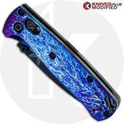 MODIFIED Benchmade Mini Bugout 533BK Knife + KP Contoured Black / Cobalt Blue G10 Scales