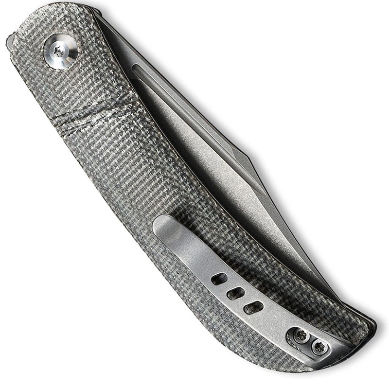 The C2015C CIVIVI Appalachian Drifter is a Double Detent Slip Joint gent style EDC, produced by CIVIVI (a subsidiary of WE Knife Company), that features a 2.96 inch non locking clip point blade made of CPM S35VN stainless steel, .10 inches thick, with a Rockwell hardness of 59-61, a hollow grind with fuller and tip swedge, non reflective gray stonewash finish and a flipper for ambidextrous one hand opening. The dark green Micarta handle, 3.84 inches closed, has a caged ceramic ball bearing pivot for smooth, fast opening, gray stainless steel liners and Micarta backspacer for strength, and a removable deep carry stainless steel pocket clip mounted at the butt end. This WE CIVIVI Appalachian Drifter Knife has an overall open length of 6.8 inches, and it weighs 2.49 ounces. Made in China.