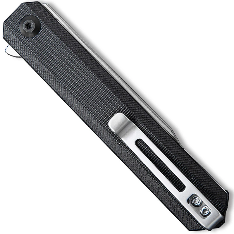The C917C CIVIVI Chronic is a sleek value price EDC produced by CIVIVI, a subsidiary of WE Knife Company, that features a 3.22 inch clip point blade made of 9Cr18MoV stainless steel, .12 inches thick, with a Rockwell hardness of 58-60, a hollow grind, satin finish and a flipper for ambidextrous one hand opening. The slim profile black G10 handle, 4.10 inches closed, has a pivot with steel ball bearing support for smooth opening, gray stainless steel liners and black G10 backspacer for strength, a sturdy liner lock and a side to side reversible deep carry stainless steel pocket clip mounted at the butt end. This WE CIVIVI Chronic Knife has an overall open length of 7.32 inches, and it weighs 2.50 ounces. Made in China.