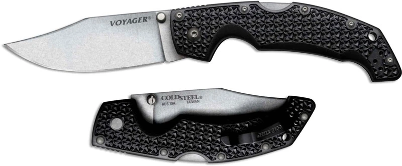 Cold Steel 29AC Large Voyager Knife AUS 10A Clip Point Black Griv-Ex Tri-Ad Locking Folder