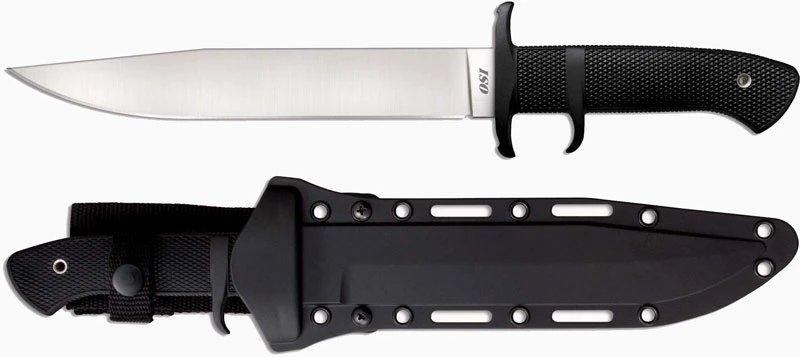 From Cold Steel: The OSI is a very sturdy, single edged version of our OSS. Flat ground to a thin, ultra-keen edge, it too is an awesome sticker and will cut and slash with equal aplomb! Extensively field tested by our President, Lynn C. Thompson, it has field dressed, skinned and “broken up” dozens and dozens of animals from wild boar to buffalo and proved to be outstandingly efficient field knife. It’s also ideal for use in countries or localities that prohibit or restrict double edge knives.
