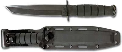Short Black KABAR Tanto, Plain Edge with Hard Plastic Sheath, KA-5054
