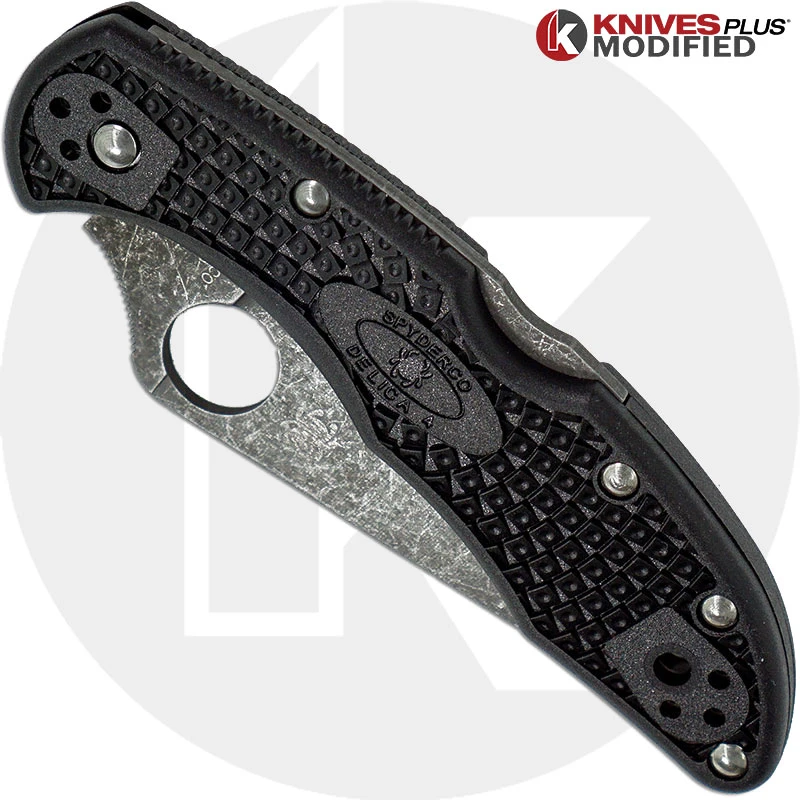 MODIFIED Spyderco Delica 4 – Acid Wash – Black Handle/Black Backspacer – KP-DLEICA-65