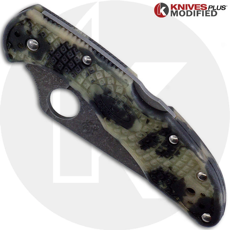 MODIFIED Spyderco Delica 4 Knife – Glow In The Dark Zome – Acid Stonewash – KP-DELICA-69
