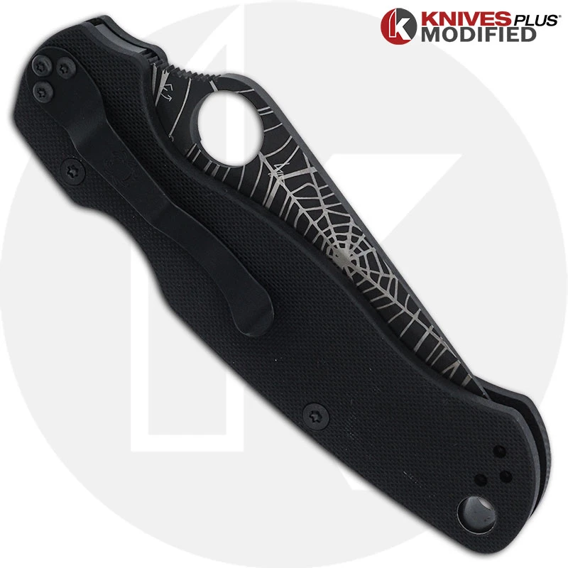 MODIFIED Spyderco Para Military 2 Knife – Black CPM S45VN Blade – Web Blade Engraving